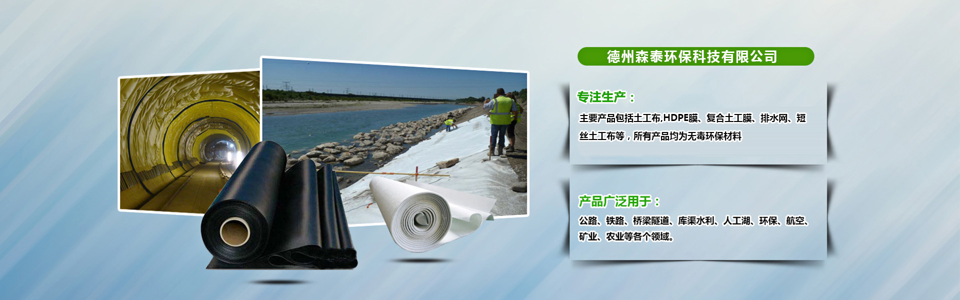 寰峰窞媯嘲鐜繚縐戞妧鏈夐檺鍏徃錛屾.娉扮幆淇濅笓娉ㄤ簬姘村埄銆佺幆澧冨強鐢熸佷慨澶嶆妧鏈爺鍙戝強浜у搧鍒墮狅紝騫舵湁涓撲笟鐨勬柦宸ュ伐紼嬫妧鏈湇鍔″洟闃熴傚凡瀹屾垚姘村埄宸ョ▼100澶氶」錛岀幆澧冨伐紼?00澶氶」錛屽吀鍨嬪伐紼嬪寘鎷崡姘村寳璋冨伐紼嬨佷笁宄″伐紼嬨佹還娌辨渤闃叉笚宸ョ▼錛屼繚瀹氱幆鍩庢按緋誨伐紼嬨佹祹鍗楀瀮鍦懼~鍩嬪満宸ョ▼錛屾鏋楀瀮鍦懼~鍩嬪満宸ョ▼銆佸ぇ鍚岀數鍘傞槻娓楀伐紼嬨佸槈鍏寸伀杞︾珯闃叉笚宸ョ▼銆侀粦榫欐睙鍐滃灕闃叉笚宸ョ▼絳夈傛.娉扮幆淇濅富瑕佷駭鍝佸寘鎷湡宸ュ竷,HDPE鑶溿佸鍚堝湡宸ヨ啘銆佹帓姘寸綉銆佺煭涓濆湡宸ュ竷絳夛紝鎵鏈変駭鍝佸潎涓烘棤姣掔幆淇濇潗鏂欙紝鍙箍娉涘簲鐢ㄤ簬錛?.鐜淇宸ョ▼錛堢伯椋熷熀鍦板湡澹ゆ敼鑹佸伐涓氬満鍦般佺熆涓氥佹按浣撶瓑宸ョ▼銆佽敩鑿滃ぇ媯?鍏繪畺錛岀妞嶇瓑錛?.姘村埄宸ョ▼錛堟睙娌蟲按搴撱佸牑鍧濈殑闃叉笚鍔犲浐銆佹按娓犵殑闃叉笚銆佹姢鍧$瓑錛夊強甯傛斂闃叉笚錛堝湴閾併佸緩絳戠墿鐨勫湴涓嬪伐紼嬨佺妞嶅眿闈€佸眿欏惰姳鍥殑闃叉笚銆佹薄姘寸閬撳唴琛瓑錛?.....